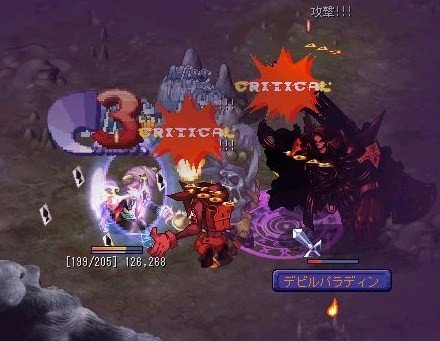 で、出会いましたよ。雪の女王様に。とにかく硬かった;それでもノリノリで叩いているといつの間にかトンカチマークが右上に…さらにヒールPot特大が無くなって撤退。申し訳ないですm(__)m